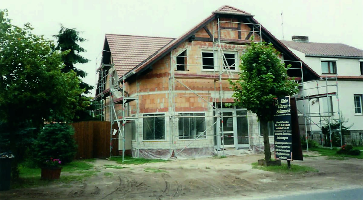 Im Jahr 1996 fand ein kompletter Geschäftsneubau statt. Dadurch wurden der Verkaufsbereich und die Werkstatt um ein Vielfaches vergrößert. Außerdem wurde im gleichen Jahr noch eine Goldschmiedin eingestellt. Im darauf folgenden Jahr wurde vor dem Geschäft ein Kundenparkplatz errichtet. Des Weiteren findet eine stetige Erweiterung des Warensortiments statt. Diverse Marken an Armbanduhren, Gold-, Silber-, Brillant- und Perlschmuck fanden ihren Platz im Geschäft. Da insbesondere Reparaturarbeiten für den Betrieb von großer Bedeutung sind, achten wir stets auf eine moderne Werkstattausrüstung.