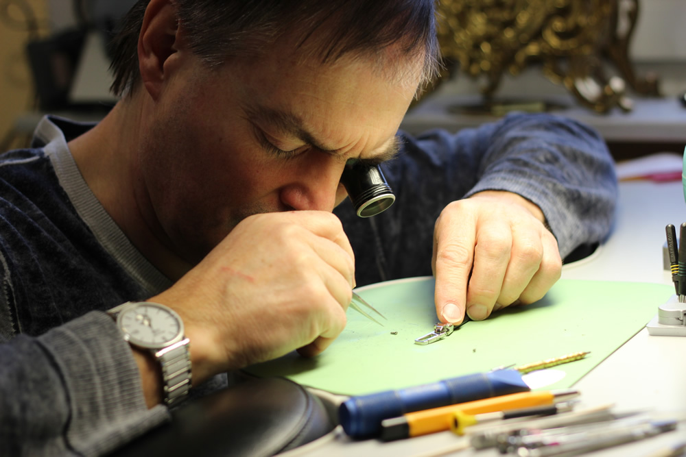 Neben dem Uhren- und Schmuckverkauf bieten wir Ihnen umfangreiche Servicearbeiten an. Für den Chef, Uhrmachermeister und Juwelier steht das Handwerk an erster Stelle. In unserer hauseigenen Werkstatt werden alle Reparaturen von ausgebildeten Uhrmachern und Goldschmieden durchgeführt.